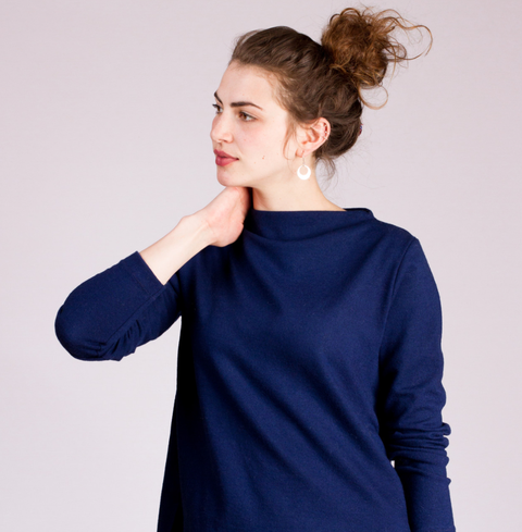 I bought this pattern as I love a cowl neck. I have made this pattern twice, with both long and short sleeves. This is a simple pattern to follow, and easy to make; though I have top stitched the back neck facing to keep it in place. I like the cowl neck which is perfect for those of us who need to keep our cool. I will definitely make this again. I have used viscose jersey for both versions as I find it drapes well.