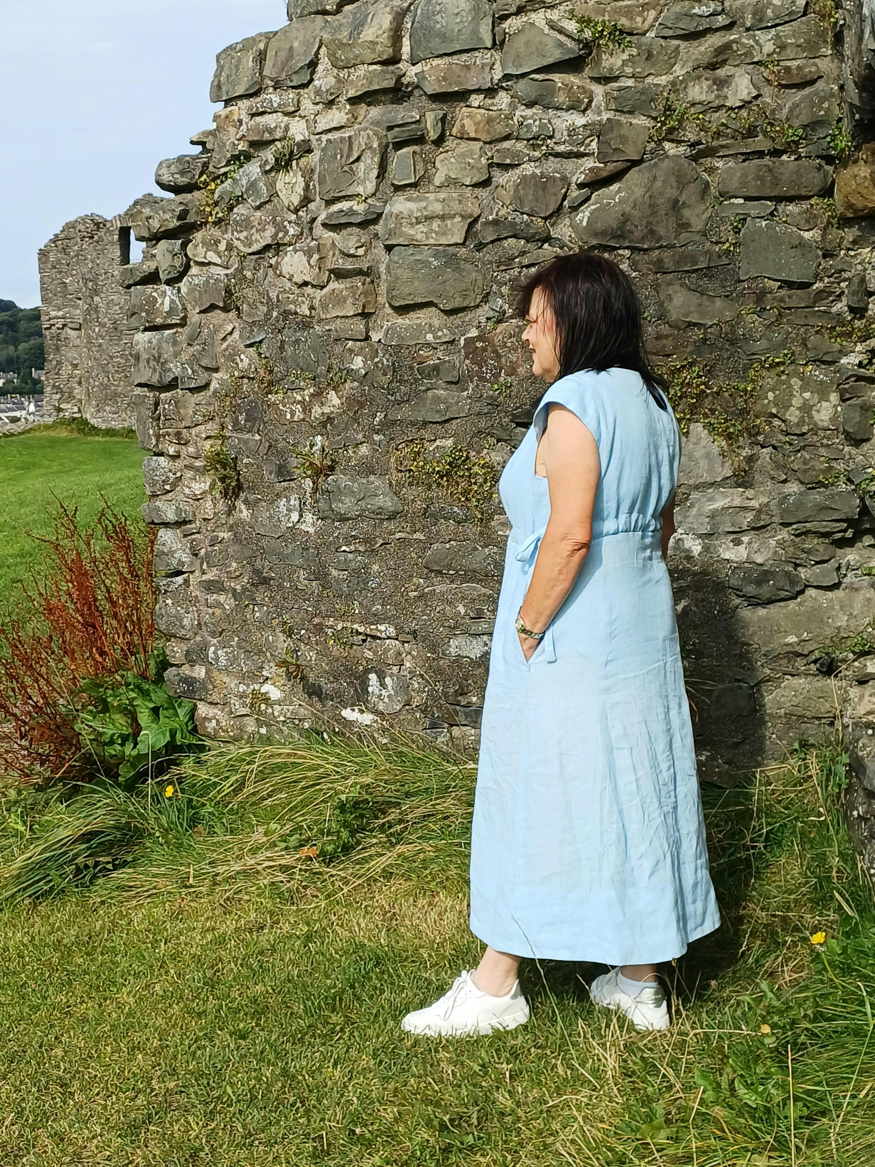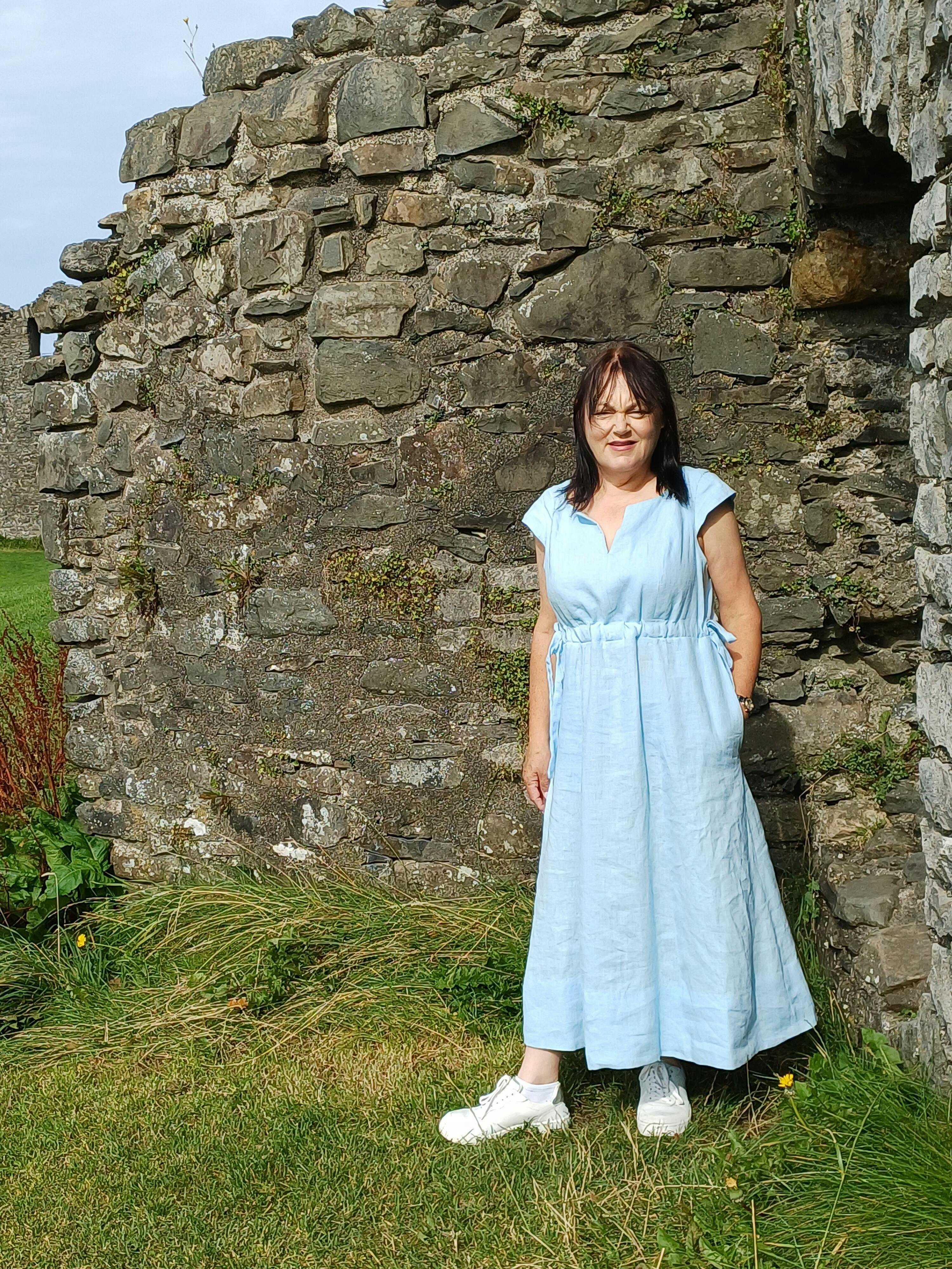 The dress was great to see but I found bagging out instructions for the bodice hard to follow so found a YouTube clip to fathom it out. It was quite long on me even after adjusting for height (I’m five foot). So far I have made it in polka dot cotton and also in linen. The linen was probably more suit than dress weight. I’m planning to remake in a lighter weight navy linen this year.