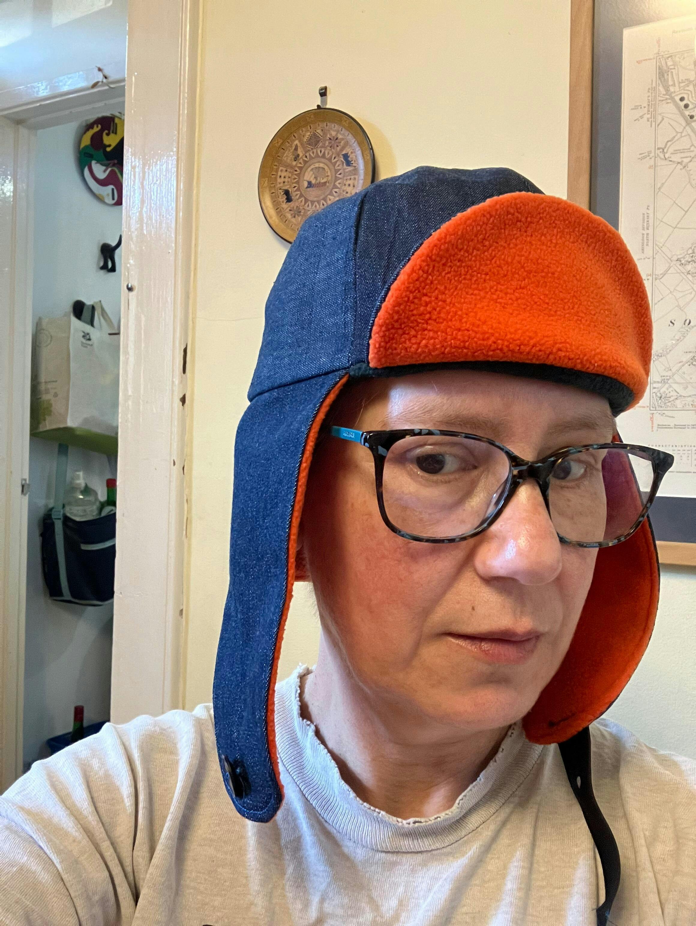 I bought this pattern slightly on impulse and slightly on request: my kid was interested to have a trapper hat and I was curious to give it a try. The first one I made (denim and fleece, in blue and orange) was a very quick sew and very satisfying. I was able to make it with just fabrics I already had to hand, it doesn’t use much at all. Since then I’ve worn it pretty much every day and am really pleased with it - it keeps my ears warm, is useful when cycling, and is lightweight too.