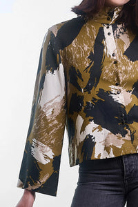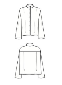 Buy the La Chemise Amirale sewing pattern from Atelier Brunette. A shirt with a high collar that adds a touch of elegant poise to your look. La Chemise Amirale features a loose fit for ease of movement, double-button front placket, back yoke and pleats, and long, slightly flared sleeves.