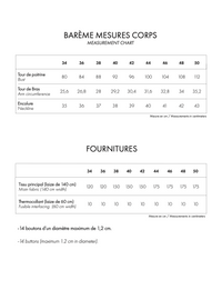 Notions: 10 cm of 60 cm wide fusible interfacing; fourteen buttons, max. 1.2 cm diameter.