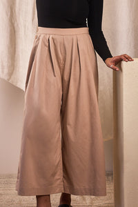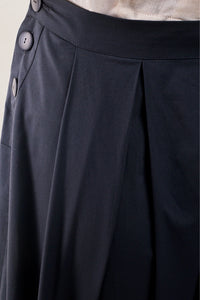 Buy the La Jupe Culotte sewing pattern from Atelier Brunette. La Jupe Culotte blends the comfort of trousers with the volume of a skirt for an effortlessly elegant look. These 7/8-length culottes have a relaxed fit with an elasticated back waistband. Other features include a high waist, pleats at the front, a button placket on one side, and a pocket on the other.