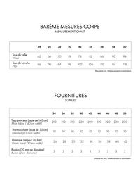 Suggested fabrics: Light to medium weight fabrics depending on the desired style: cotton or cotton blends, poplin, linen, viscose or viscose blends.