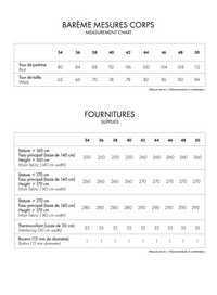 Suggested fabrics: Light to medium weight fabrics depending on the desired effect: cotton or cotton blends, poplin, linen, viscose or viscose blends.