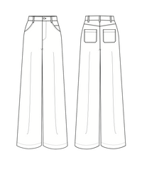 Buy the Le Jean Wide Leg sewing pattern from Atelier Brunette. Le Jean Wide Leg features a high waist (above the belly button) and wide leg for an unparalleled silhouette. The straight cut was designed for easy length adjustment based on your height. These jeans have all the classic denim details: a waistband button and zipper fly, back yoke, front and back pockets, a coin pocket, belt loops, and double topstitching for a professional finish.