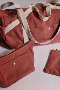 Buy the Le Pack Escapade sewing pattern from Atelier Brunette. This pack includes three bag patterns perfect for your weekend escape: a weekend bag, beauty bag, and pouch.