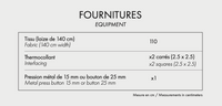 Notions: Two squares of fusible interfacing, 2.5 cm x 2.5 cm; one 15 mm metal press button or 25 mm button.