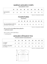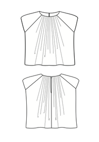 Buy the Le Top Épaulette sewing pattern from Atelier Brunette. Le Top Épaulette is an elegant top with lightly padded, very short raglan sleeves. It has gathers at the front and back neckline and closes with a button and loop at the back.