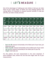 Sizing: EU 34 – 52 (approx. UK 8/10 – 24/26, based on our standardised size chart). Please also check the designer's size chart and finished garment measurements.