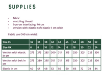 Fabric requirements: 140 cm wide fabric: Version with elastic, 275 - 330 cm // Version with belt, 275 - 330 cm.