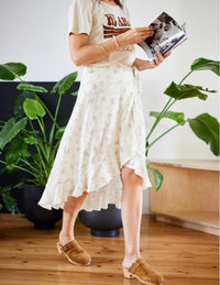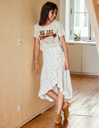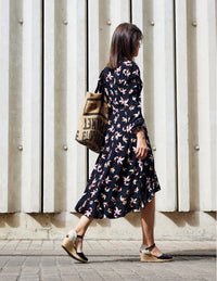 Buy the Obsession Dress or Skirt sewing pattern from Atelier Scämmit. An elegant wrap dress with refined details: gathers on the shoulders, a flared flounce hem, and French seam finish. It has simple or gathered long or short sleeves. The pattern includes two length options and can also be made as a skirt.