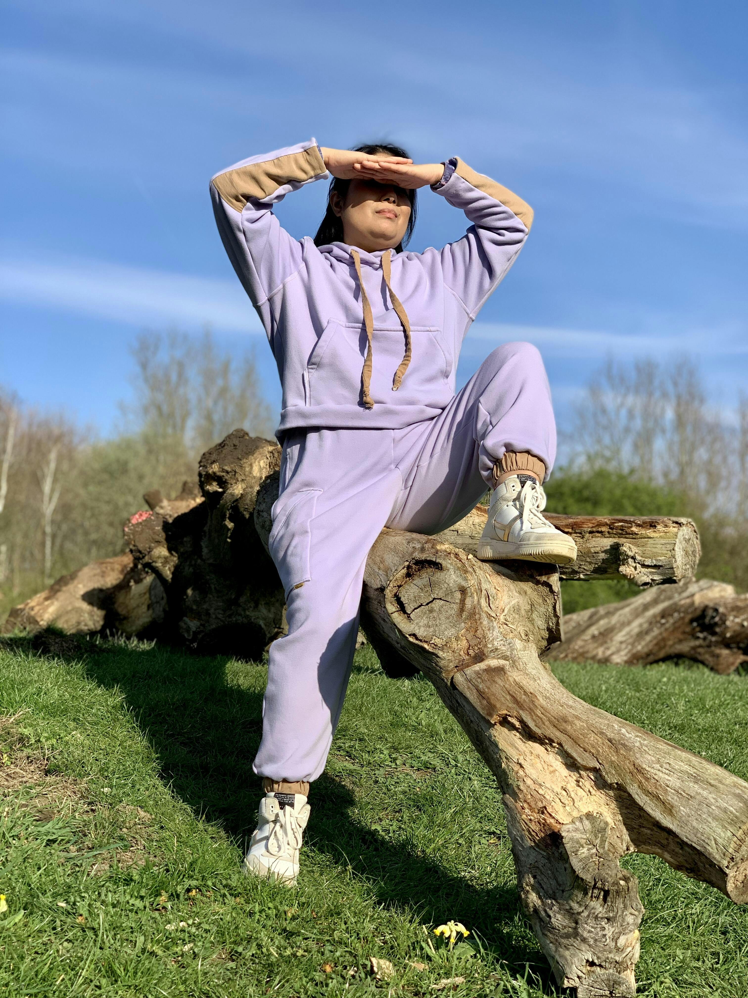 Buy the Interstellar Hoodie sewing pattern from Bella Loves Patterns. Interstellar is a comfortable hoodie sweatshirt with a moderate oversized fit. It features an angled shoulder yoke, with a two-piece sleeve that tapers towards the cuff with a single front dart, a roomy kangaroo pocket, and a deep hood with a crossover front. Interstellar has a beautiful professional finish around the neck that will elevate the quality of your hoodie.