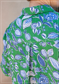 Buy the Amanda Shirt and Dress sewing pattern from Bobbins and Buttons. This versatile shirt and shirt dress pattern is fitted at the shoulders with set-in sleeves and a gently flared lower bodice. It has a back pleat for ease and shaping. Choose between two sleeve options: a classic cuffed shirt sleeve or a 3/4 length sleeve without a cuff. The dress version has optional in-seam pockets and a tie belt.