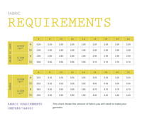 Dress: 150 cm (60") wide fabric: 3.25 m (3.55 yd) // 112 cm (45") wide fabric: 3.65 - 4.1 m (3.9 - 4.4 yd).