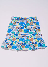 Buy the 9210 Children's Mini Skirts sewing pattern from Burda. These two patterns show cute mini skirts for children - perfect for beginners! The first pattern enchants with a girly ruffle and a cheerful fish print that will put you in a vacation mood. The second skirt features practical seam pockets and a fitted cut that can be individually adjusted using a drawstring and overhanging straps at the front.