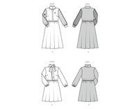 Buy the 5696 Misses' Dresses sewing pattern from Burda. This dress pattern offers two chic variations – perfect for experienced sewers! The first pattern blends sporty and feminine elements with a stand-up collar, concealed button placket, and bell skirt, highlighted by colourful stripes and colour blocking. The second pattern is versatile, featuring a flap and elasticated waist, making it ideal for dinner, the office, or a party. Dress it up with a blazer and heels, or keep it casual with ballerinas!
