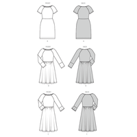 Buy the 5708 Misses' Dresses sewing pattern from Burda. This dress comes in three easy sewing patterns! The striped jersey dress with a flared skirt and long sleeves is a must-have for any wardrobe. The slim shift dress in caramel is quick to sew and has an elegant look. The day dress offers a figure-hugging fit, feminine flounces and comfort thanks to organic jersey with elastane.