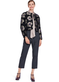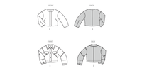 Buy the 5711 Misses' Jackets sewing pattern from Burda. Discover two stylish jacket patterns in one! The first is a modern short jacket with playful jacquard fabric and tapered sleeves, blending femininity and edge. The second is a casual denim jacket with voluminous sleeves, dividing seams, and cool details like topstitching and patent buttons. Ideal for experienced sewists looking for a new challenge!