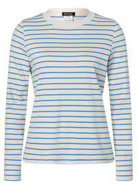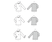 Buy the 5705 Misses' Shirts sewing pattern from Burda. This shirt pattern offers three cool variations: Version 1 is a basic long sleeve shirt in beige with blue stripes and cuffs that can be designed with Seraflex yarn. Version 2 has 7/8 sleeves, yellow stripes and a stand-up collar. Version 3 is feminine with a soft single jersey and tulle ruffles on the collar and sleeves. Great for any occasion and they're easy to sew!