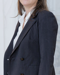 Buy the Naelle Blazer sewing pattern from Coralie Bijasson. Naelle is a double-breasted blazer with notched lapels and patch pockets. Its structured fit defines the waist and subtly modernises the look. Classic and timeless, yet full of character, Naelle is the ideal piece to wear both to the office and for a night out.