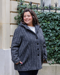 Buy the Nora Coat sewing pattern from Coralie Bijasson. Nora is a stylish coat with a subtle A-line shape, raglan sleeves, and practical hood. Sew it in wool for cold weather, or in coated canvas for a lighter mid-season variation. Its clean and contemporary cut makes it a wardrobe essential.