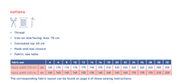 Fabric requirements: 110 cm wide fabric: 165 - 255 cm // 140 cm wide fabric: 145 - 220 cm.