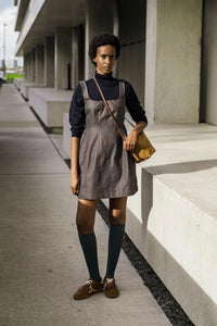 Buy the Avina Dress sewing pattern from Fibre Mood. Avina perfectly blends structure and ease. This corset-style dress is beautifully shaped through the bust and waist while giving your hips room to move. The neckline and armholes are neatly finished with a facing. Wear Avina on its own with heels for a fancy evening look, or as a pinafore dress over a turtleneck or blouse when it gets colder. You decide the vibe.