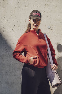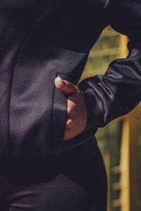 Buy the Cruz Sweater sewing pattern from Fibre Mood. Sporty and elegant? Cruz makes it possible. This sweater features a stand-up collar and zip fastening for instant cool vibes. Welt pockets are set into curved front panels, and the sleeves and hem are finished with ribbing (or your main fabric if it has enough stretch). A versatile winner that fits into any wardrobe.