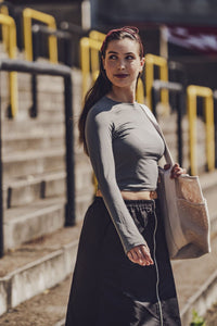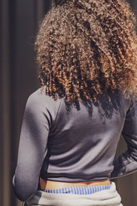 Buy the Dymar Top sewing pattern from Fibre Mood. Dymar is a fitted, cropped sports top with a round neckline and raglan sleeves. The sleeves are extra long and have thumbholes. The length of the top is easy to customise, depending on how you want to wear it. Perfect for active days or as a sporty layer under a jacket. We bet you'll make more than one!