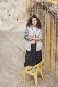 Buy the Ember Bodywarmer sewing pattern from Fibre Mood. Ember is a long, cosy bodywarmer with the option to line it for extra warmth and make it reversible. A win-win! The edges are neatly finished with bias tape, and you can decide whether to add snap fasteners or leave it open without a closure. Perfect for layering over the Denver Top and Yuki Leggings, or for adding a touch of flair to your everyday outfit. Functional and fashionable!