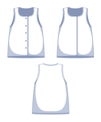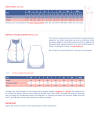 Notions: Scrap of iron-on interfacing; bias tape, 2 cm folded width (see chart) // Optional: snap fasteners, 2 cm diameter, 5 for XS-M or 6 for L-XXXL.