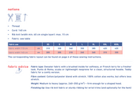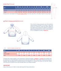 Suggested fabrics: Sweater fabric with a brushed inside for softness, or French terry for a fresher look. Punto di Roma, scuba, or lightweight neoprene for a clean, structured hoodie. Teddy fabric for a comfy version.
