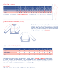 Sizing: XS – XXXL (approx. UK 6 – 28/30, based on our standardised size chart). Please also check the designer’s size chart and pattern measurements.