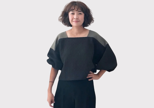 Buy the Jo Top sewing pattern from Fibre Mood. This short jumper with three-quarter-length balloon sleeves is sure to become one of your favourite wardrobe basics. Trim fabric is used for the neck binding, wrist trim, and hem band. Jo can be sporty with trousers or chic with a skirt. This sewing project is definitely beginner friendly. Jo's catchphrase is ‘less is more’!