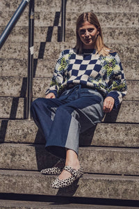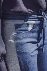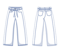 Buy the Johanna Trousers sewing pattern from Fibre Mood. Johanna is not your standard pair of jeans. Additional seams at the front and back replace the side seams. Together with the back yoke, they create a beautiful fit with smooth shaping around the hips. And thanks to these seams, the pattern pieces are smaller – ideal for using old jeans or fabric scraps! Details include a straight waistband with belt loops and a tie, zip fly, coin pocket, curved front pockets, and pointed back pockets.