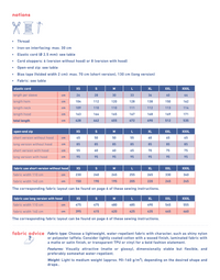Short version without hood: 110 cm wide fabric: 230 - 340 cm // 140 cm wide fabric: 150 - 245 cm.