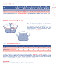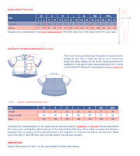 Sizing: XS – XXXL (approx. UK 6 – 28/30, based on our standardised size chart). Please also check the designer’s size chart and pattern measurements.