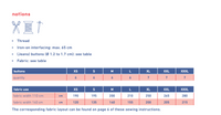 Melody and Melanie: Iron-on interfacing, max. 65 cm; (jeans) buttons, 1.2-1.7 cm diameter, 6 for XS-L or 7 for XL-XXXL.