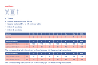 Mimi: Fabric 1: 110 cm wide fabric: 105 - 160 cm / 140 cm wide fabric: 75 - 100 cm // Fabric 2: 110 cm wide fabric: 75 - 115 cm / 140 cm wide fabric: 75 - 105 cm.