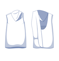 Suggested fabrics: Choose supple fabrics with enough body to support the integrated scarf. Ideal options are lyocell twill, satin, acetate, poplin, chambray, etc.