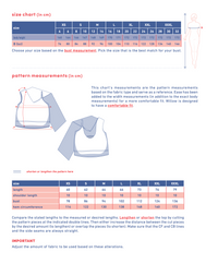 Sizing: XS – XXXL (approx. UK 6 – 28/30, based on our standardised size chart). Please also check the designer’s size chart and pattern measurements.