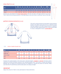 Sizing: XS – XXXL (approx. UK 6 – 28/30, based on our standardised size chart). Please also check the designer’s size chart and pattern measurements.