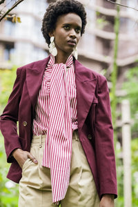 Buy the Zizou Top and Dress sewing pattern from Fibre Mood. One pattern, many possibilities. Zizou is a top or dress with an integrated scarf, which you can style however you like. Choose one wide and one narrow scarf for a softly draped look, or go for two narrow scarves tied together for a chic effect. The neckline is finished with a facing, while the sleeves feature cuffs for an extra refined touch.