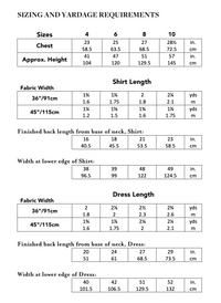 Shirt length: 36" (91 cm) wide fabric: 1 3/4 - 2 1/4 yd (1.6 - 2.1 m) // 45" (115 cm) wide fabric: 1 1/4 - 1 7/8 yd (1.2 - 1.75 m).