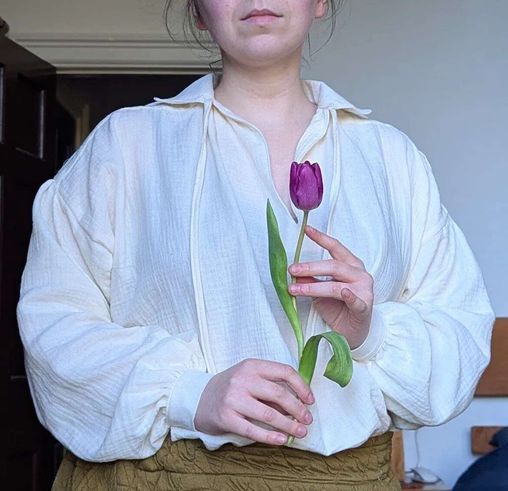 Suggested fabrics: Light or medium-weight shirting fabrics such a broadcloth, homespun, linen, chambray, or silk. The original shirt was made of handwoven linen.