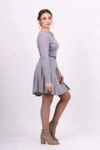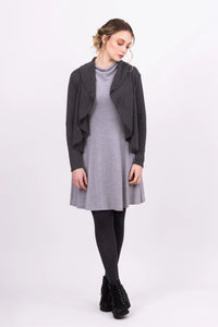 Buy the Clementine Dress and Top sewing pattern from Forget-me-not Patterns. Clementine is a dress and top pattern designed for knit fabrics. It features princess seams which follow the curves of the body. The top version offers a more tailored look than a basic tee, while still being incredibly comfy and easy to wear. The dress version flares out below the waist into a swishy, full skirt that finishes mid-thigh or above the knee. It also features the option of in-seam pockets. Choose from a versatile scoop neck, or a high cowl neck for a subtle touch of elegance. The sleeve also comes in three different lengths. Despite its extra details, Clementine is still an easy sew and a great introduction to working with knit fabrics. Sew Clementine for everyday style, or break out your fancy fabric for a stylish evening look!