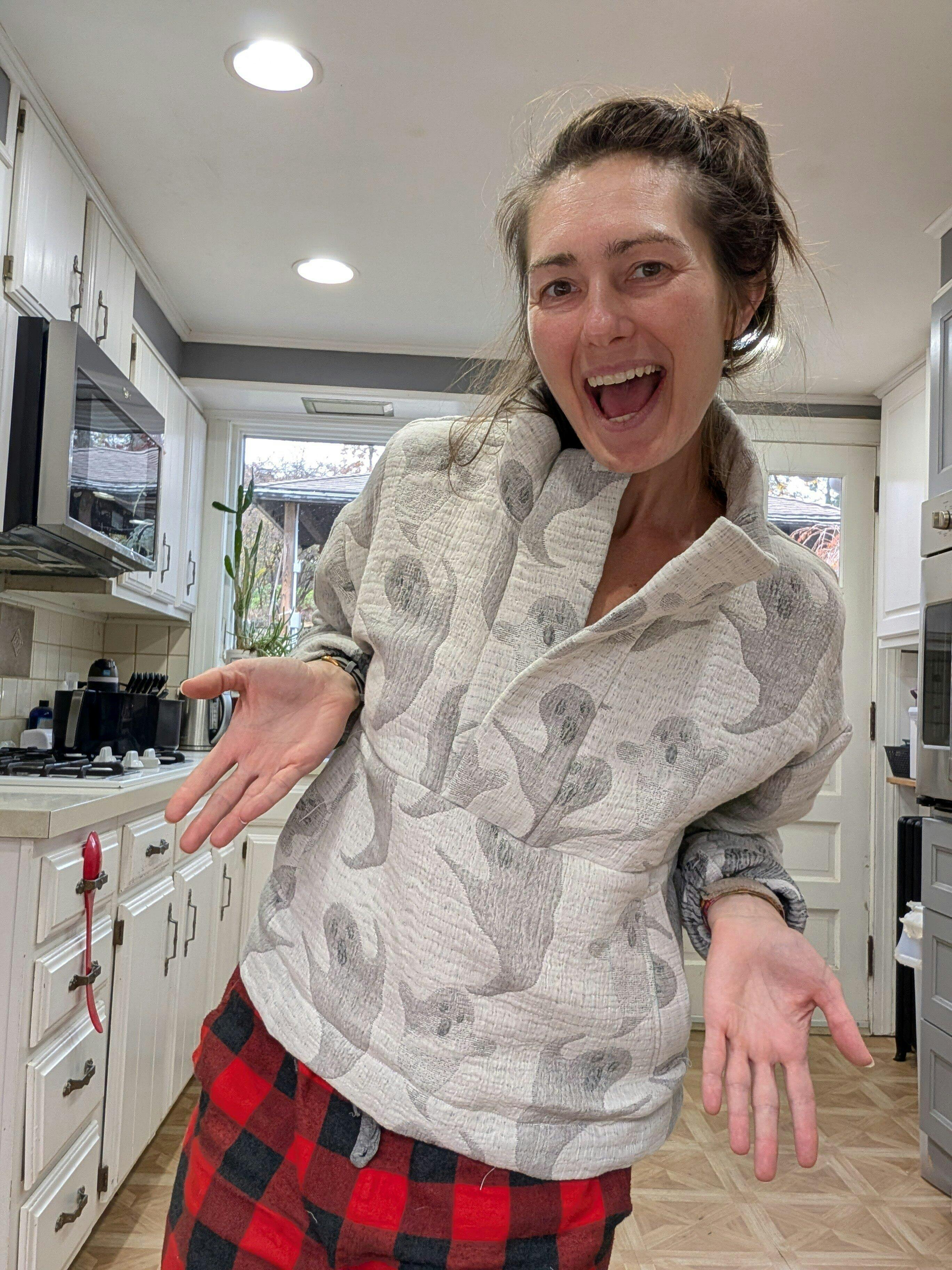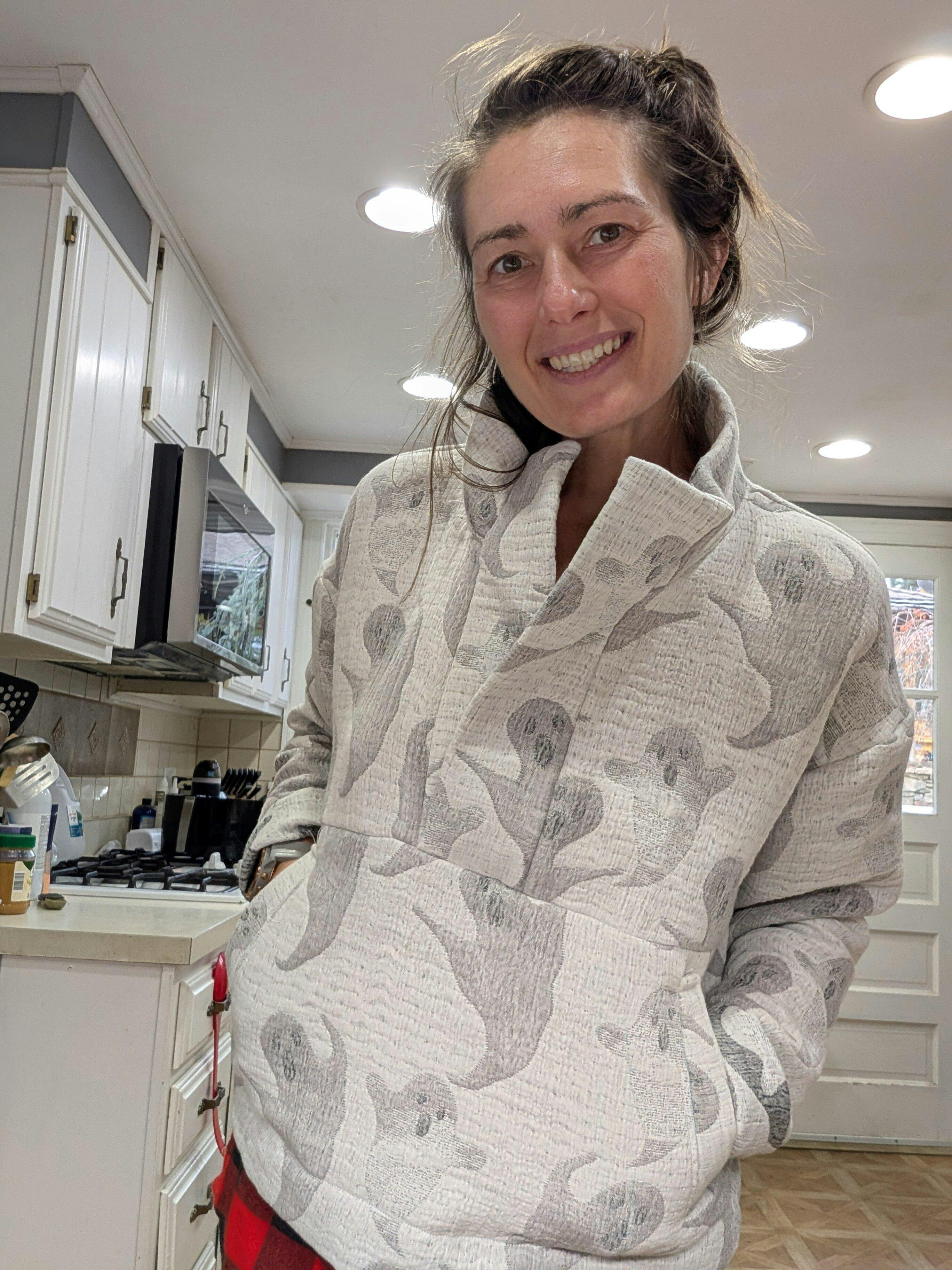 Suggested fabrics: You have lots of options when it comes to fabric choice! The Pogonip can be made from a woven or stable knit fabric. French terry, velour, corduroy, linen, denim, and pre-quilted fabrics look great (to name a few!).