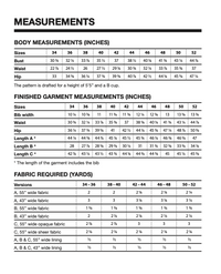 This pattern is drafted for a height of 165 cm (5'5") and a B cup.