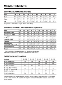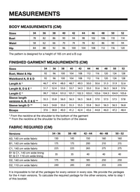 This pattern is drafted for a height of 165 cm (5'5") and a B cup.