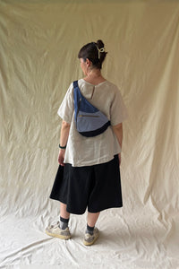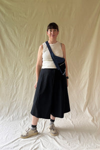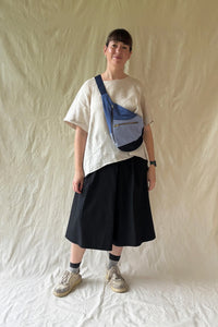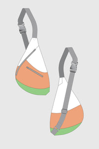 Buy the Darlow Bag sewing pattern from In the Folds. The Darlow Bag is a crossbody bag with a twist! Designed to be worn on the front of the body or on the side (over the right shoulder), this bag is both stylish and practical. The perfect scrap-busting project, it can be made in a single fabric or in contrasting fabrics to highlight its unique curved panel seams.